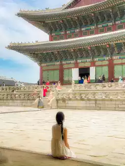 Walk through its majestic courtyards in a hanbok (traditional costume) and donβt miss the Changing of the Guard ceremony π