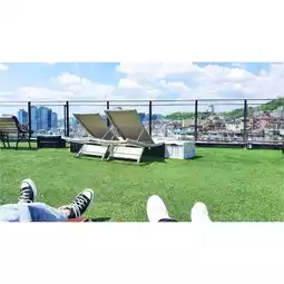 It is located on the top of the slope of Haebangchon, and since it is a ⭐️rooftop cafe⭐️, the refreshing view was so nice~°♡° And just like the name "Nup Cafe", there are seats where you can lie down and enjoy the view comfortably 👍👍