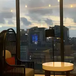and they also sell wine, and they also have a breakfast buffet and a sky lounge bar! There are also many restaurants in the shopping mall inside the building!
