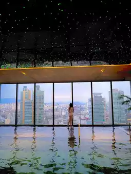 I went to the newly opened Sofitel hotel for a vacation, where I often used the lounge. I heard that the view was great and had some expectations, but it was really amazing! You can enjoy the best view from anywhere, whether it's the lounge, swimming pool, or the room. The swimming pool, which is known for its beauty, had the perfect angle for an Instagram-worthy shot. However, you need to come early or wait longer than the reserved time to get a seat as only one team can sit at a time. I was lucky enough to sit the next morning, and it was worth it! The view was just beautiful 🤍.