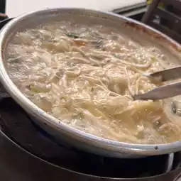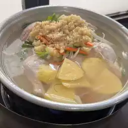 The soup, full of garlic made from well-simmered chicken, goes well with the guksu, so you can't go home without it 🥹!