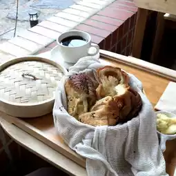 You can choose the filling for the steamed toast from sweet potato or chestnut. Soufflé toast is also popular!