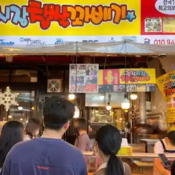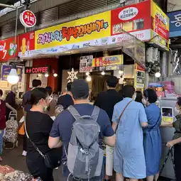 There is a kwabaegi (fried donut) shop in Gwangjang Market, Seoul, Korea, where there are always long queues.