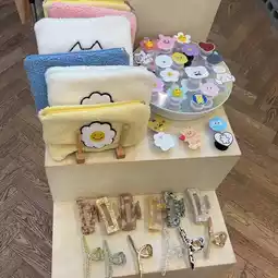 This store sells a variety of cute items, including candles, tableware, accessories, hair accessories, pouches, smartphone grips, clothes, and socks. 🧸💕