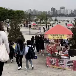 At Yeouido's Hangang Park, you'll find food stalls selling tteokbokki, Korean oden, skewers, and more, creating a festive atmosphere!