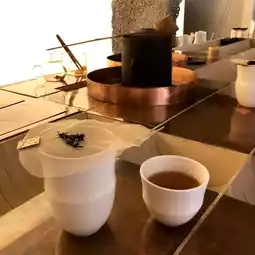 On the first floor, there's counter seating, where a barista will brew your tea right in front of you.