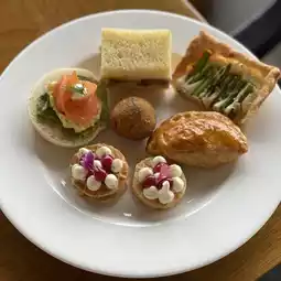 Snacks, savory, sandwiches, desserts, ice cream, afternoon tea stand