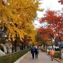 The Olympic Park in Seoul, with a stadium used to host tournaments during the 1988 Olympic Games, has a park at surroundings with different plants and faunas at different seasons. Olympic Park during autumn offers a stunningly beautiful scenery for visitors to enjoy the foliage. The streets surrounding the park are covered with yellow gingko trees, where every corner is a piece of art.