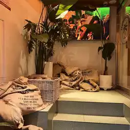 There was also a real parakeet in a birdcage, which was very relaxing! 🦜