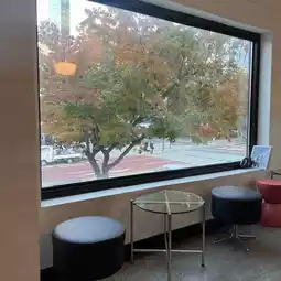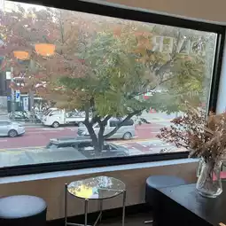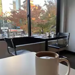 Located in Mangwon, you'll find a cafe with large windows offering a breathtaking view of the autumn leaves.