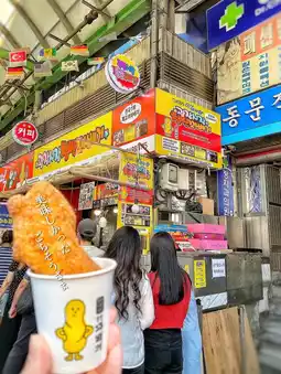 The hot kwabaegi is served in a cute cup and you can eat it while you walk around💓