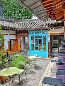 A cafe where you can experience both the atmosphere of a traditional Korean house, a hanok, and the atmosphere of a cute cafe in Paris, France, all at once.