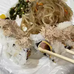 The kimbap is not too strong, so it's even more delicious when you eat it with japchae or a chili pepper-based sauce🤤🤍