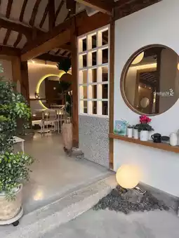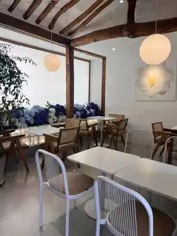 The cafe is generally white, and the ceiling is designed to allow you to see the sky, so if you visit during the day, the sunlight shines in and it is very beautiful.