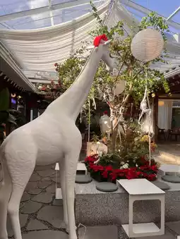 When you enter the cafe, you will see a giraffe sculpture right in the middle 💛