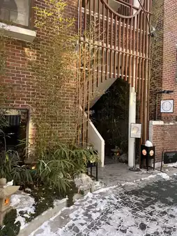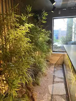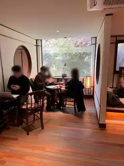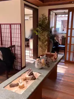 The cafe itself is three stories tall and not very large, but you can spend time relaxing in the green and Japanese space.