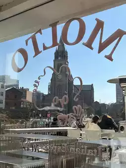 This cafe is located on the third floor of a building in front of Myeongdong Cathedral and has a spacious terrace.