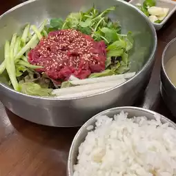 My actual destination was the "Buchon Yukhoe Main Branch," but I was walking from the nearest station in a bit of a panic, as the last order time was approaching, and the first place I saw was the Annex lol (the main branch is in Gwangjang Market Yukhoe Street, the Annex is along the main street)