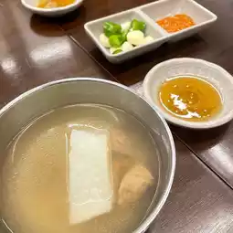 Water is self-service. The beef bone soup with a big radish was so delicious and comforting that I wanted to ask for a refill. I wasn't sure how to use the garlic, green chili peppers, and spicy miso that were served with it, so I ate it as it was, and it was spicy!!! I heard that you can mix it into the yukhoe to your liking (I looked it up later).