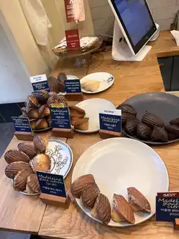 There are many types of madeleines and financiers lined up on the counter ♡