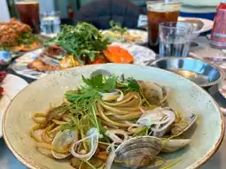 Vongole I order it every time (mainly personally like to eat)🤟🏻 Garlic slices many, many, fried very fragrant and fragrant😎 folded Asian twist down suspected d d d sauce, the whole thing is quite interesting 🥸