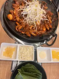 I enjoyed putting plenty of octopus and flying fish roe on perilla seeds. I also added flying fish roe to the last bokkeum pub, which gave it a crunchy texture and a spicy texture after the chukmi. I thoroughly enjoyed it until the end. ❤️🔥