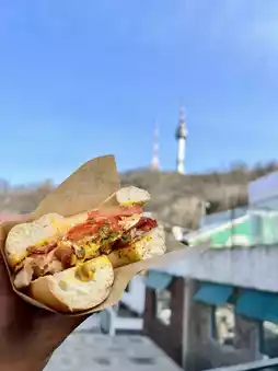 If you’re in Itaewon for the famous Korean N-Seoul tower, do drop by “The Royal Food & Drink” cafe! This cafe is situated on the top of the hill in the middle of a residential area, which gives you stunning views of the city. The cafe has both indoor and outdoor seating, and plenty of insta-worthy interior decor along with the view! The menu is mostly brunch food: big breakfasts and bagels. You can get there easily via bus. A great spot to chill and relax 😊
