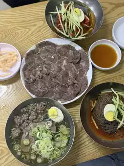If you search for Hamheung Naengmyeon, a Hamheung Naengmyeon restaurant that appears as a related search term! This is Heungnamjip in Ojang-dong☺️ It's a restaurant that was selected as a 2021 Michelin Guide🙈✨✨ The most famous is the Hoe Bibim Naengmyeon (11,000 won), and I also tried the Bibim Naengmyeon (11,000 won), Onmyeon (11,000 won), and Boiled Pork (20,000 won), and they were all delicious👍🏻👍🏻 The Bibim Naengmyeon is a little spicy, but it's the best when you eat it with the soft Boiled Pork~!!😆 It was worth waiting in line under the blazing sun♥️ I recommend it as a Hamheung Naengmyeon restaurant!