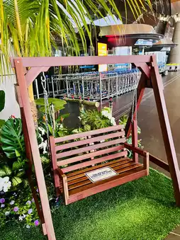 KLIA Sepang welcomes guests with a festive burst of spring and Raya spirit through its enchanting decoration. A traditional Malay house arch adorned with hanging ketupat and a charming wooden swing sets the scene, evoking warmth and nostalgia.