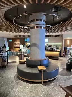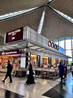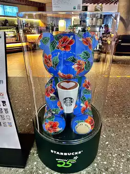 The airport itself is also well-equipped, with a wide selection of restaurants and cafes. We chose Din Tai Fung this time. Although pork isn't available in a Muslim country, the chicken chop fried rice and chicken dumplings were still excellent, with tender, juicy, and filling flavors, making for a satisfying meal. We also visited Starbucks afterward and discovered the adorable bear figurines designed by Malaysian artists. They're a true local favorite. Overall, waiting at KLIA is not only comfortable but also full of surprises, allowing for a relaxing and enjoyable experience as we prepare for our next journey.