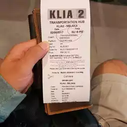I walked down to buy a bus ticket. The fare to Malacca is 24.10 RM. It takes 2 hours from KLIA2 airport. The bus is comfortable, about the same as a second-class bus in Thailand. The air conditioning is cool. After buying the ticket, you can wait inside first. When the time comes, you can go out and wait on the platform so that it won't be hot.