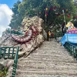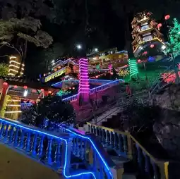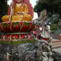 Free car park for temple goers is located at the corner of Jalan Temiang and Jalan Bukit Temiang 1 with a steep drive uphill. Visitors to the temple hope to find a centipede here as it is believed this will bring good luck and prosperity. There is a lucky tortoise pool and a koi pond overlooked by a statue of Guan Yin along with some nice statues of immortals, laughing buddha and bodhisattvas. It offers a good view overlooking Seremban with fresh cool breeze as it situated at a hill.