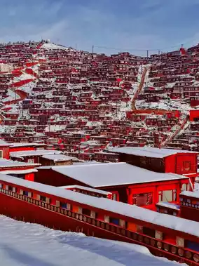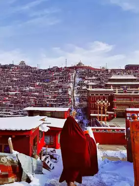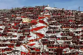 📍Seda Altar City: The golden altar city is located on the highest peak in the Buddhist Academy, and there are prayer wheels