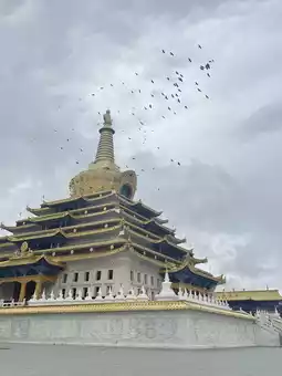 Dongga Temple is one of the three major temples in Seda County, located on a mountain resembling a white conch about 6 km west of the county seat. The panoramic view of Seda County can be seen from afar.