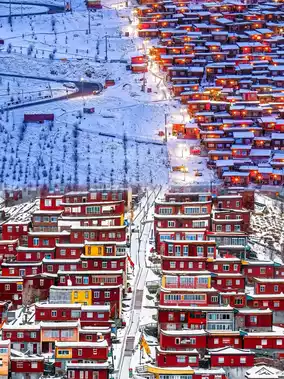 • Seda Larung Gar Buddhist Academy: One of the largest Tibetan Buddhist academies in the world, with red wooden houses all over the mountains, which is spectacular and shocking. The Mandala is the highest point of the Buddhist Academy, where you can follow the monks to turn the prayer wheel clockwise to pray for blessings; the viewing platform can overlook the panoramic view of the Buddhist Academy, which is an excellent location for taking pictures.