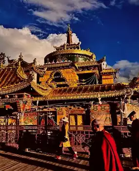 🎈Red Wooden Houses: The academy's most striking feature is the thousands of crimson wooden houses nestled against the mountainside, crisscrossing the valley, creating a breathtaking spectacle of a "Red Buddhist Kingdom."