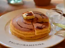 If you love pancakes, you need to check out Tsurubamisha in Kyodo, Setagaya! This cozy café specializes in pancakes, offering a variety of simple yet perfectly made options.