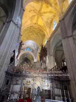 The Cathedral of Seville is one of the largest churches in the world. From its bell tower, the Giralda, you can admire the whole city.