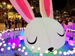 Usually Mid-Autumn Festival will display traditional lanterns, this year's lanterns are very different, all rabbits 🐇🐇 large and small rabbits with moon lanterns, the atmosphere is good, all very beautiful, worth to enjoy 💕