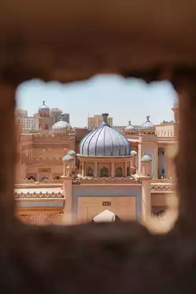 🕌Must visit in Shache: Yerqiang Khan Palace, a palace built in the desert, the current palace is restored according to historical records. The entire palace is dominated by blue, and the most special thing is its domes, which are full of Islamic style.