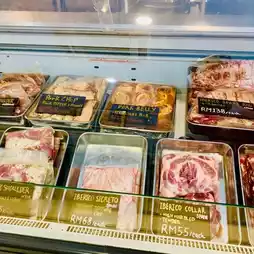 Abanico is a non-halal deli in Kota Kemuning that serves a wide selection of cuts, meats, and sausages. Their menu also reveals an extensive selection of side dishes and pasta to compliment your meat selection. There’s lamb, beef, fish…but I didn’t notice any 🐓