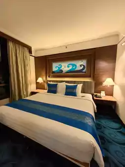The hotel features 341 rooms, including deluxe rooms and suites, with amenities such as satellite TV, high-speed internet, mini bars, and tea/coffee-making facilities. It is known for its comfort and spaciousness, catering to both business and leisure travelers.