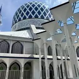 The Blue Mosque, with its beautiful white and blue exterior, is officially called the Sultan Salahuddin Abdul Aziz Mosque. It is the fourth largest mosque in the world and one of the largest in Malaysia. Its total area is about 14 hectares and it can accommodate up to 24,000 people.