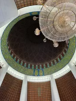 The guide will explain the details, such as the patterns on the ceiling and the stained glass.