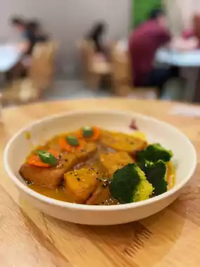 I personally like their homemade fried tofu with pumpkin sauce, somewhat I tasted KFC batter from the tofu π also, I ordered their signature nasi lemak with vegetarian rendang, love it!