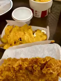 I enjoyed their crispy fried chicken, cheesy wedges, and coleslaw, all served in a setting that made me feel like I was in the 1970s or 80s! It’s a great spot for fast food lovers who appreciate a nostalgic touch.