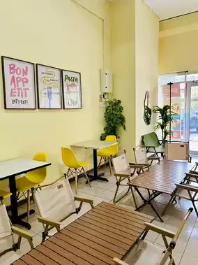 We ordered Creamy Bolognese, Salted Egg Pasta and Hot Dog. The dishes served are delicious. They have many choice of pasta. Cozy and comfortable environment. Nice place to dine in. Suitable for family because they provide kids area. The price acceptable with portion. Note to all, this place only used cashless system. Make sure you have e-wallet or card to make your payment.