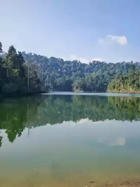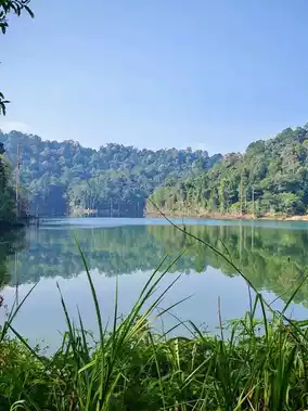 The area is surrounded by lush trees and gentle walking paths, making it ideal for a morning stroll, a quiet picnic, or just sitting by the water to soak in the calm. If you’re lucky, you might spot birds gliding over the lake or watch the ripples as fish swim beneath.