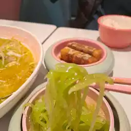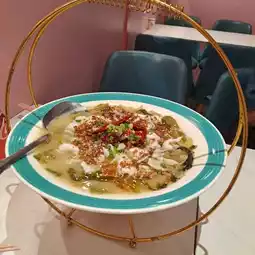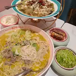Order the fresh vine pepper soup, a little spicy, with tender and sweet herring slices, tender beef and palm fat beef, side dishes of crispy asparagus slices, soybean sprouts and sweet cauliflower, plus bouncy hand-made noodles for a refreshing taste.