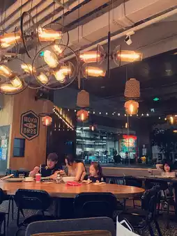 This restaurant has three parts: an open side to drink in summer, inner tables for nice conversations, working or even as dating spot; and a higher place to sit down in soft balls to spend your day, chilling.